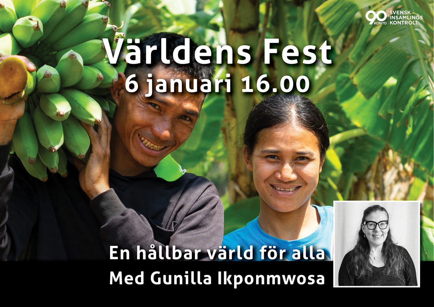 Världens fest kommer att äga rum i Redbergskyrkan den 6 januari 2026. Vi får lyssna till Gunilla Ikponmwosa. Temat för årets insamling är En hållbar värld för alla.Gunilla berättar om Equmeniakyrkans inriktning mot detta tema och med speciellt fokus på Mellanöstern.